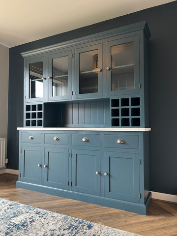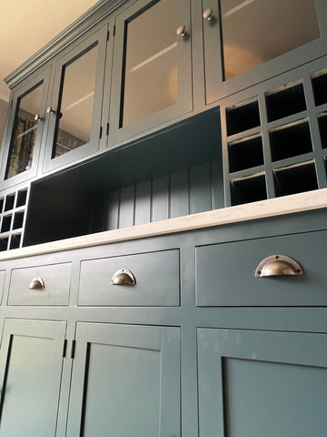 Our cabinetry is made from a mixture of woods in a spray-painted finish, you can choose from any Farrow & Ball colour.