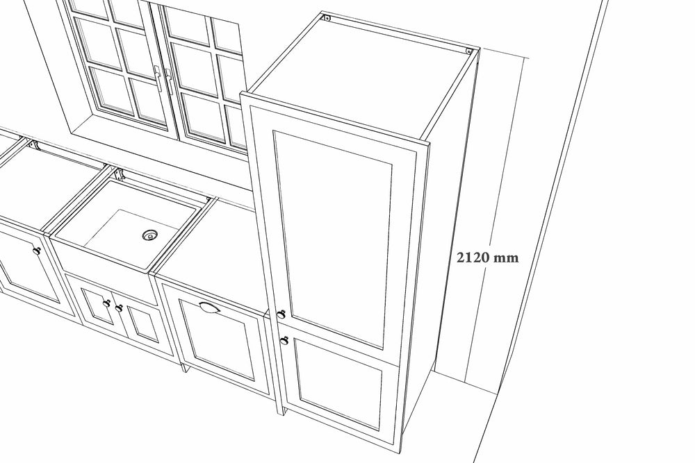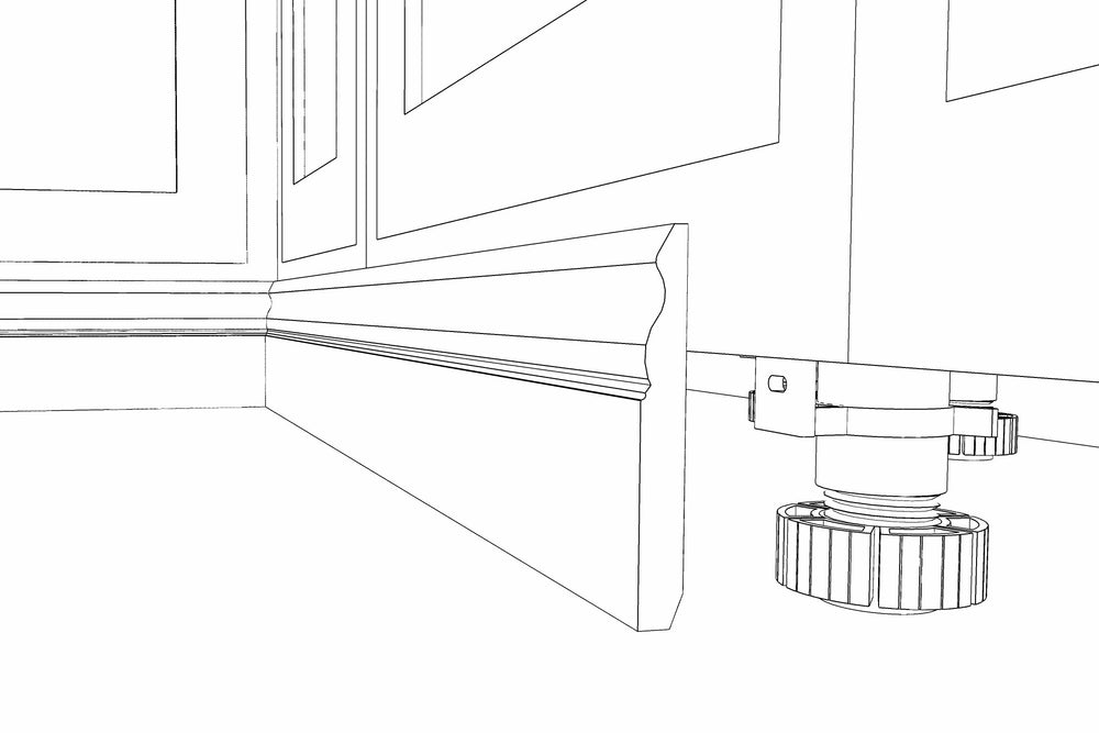Secure the unit to the batten with 90° stretcher plates, making sure that the top of the unit is measuring at 870mm. Use the adjustable feet to get the unit level, checking the level left to right and front to back with a spirit level.