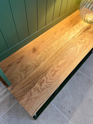 Our Boot Room Storage Benches have a solid oak seat which will always be left unpainted. Oak is a beautiful material with plenty of character, the colour and grain can vary from piece to piece which creates a lovely surprise every time.