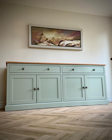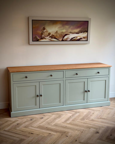 Our Sideboards have a solid oak top which will always be left unpainted. Oak is a beautiful material with plenty of character, the colour and grain can vary from piece to piece which creates a lovely surprise every time. To keep it looking at it’s best, we finish the oak with a protective oil, available in a range of colours to choose from, each colour creates a different feel for your design without compromising the natural look and feel of the wood, take a look at our Samples page to see what colours we have available.